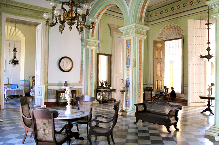 The museum offer a view of the developments from Cuban pre Columbian past. This building was originally two houses in the 18th century, both owned by the sugar barons of the Sanchez Iznaga family, two houses joined in the 19th century show the typical grilled and shuttered windows, feature an elegant portico with slim columns and a delicate wrought iron balustrade.